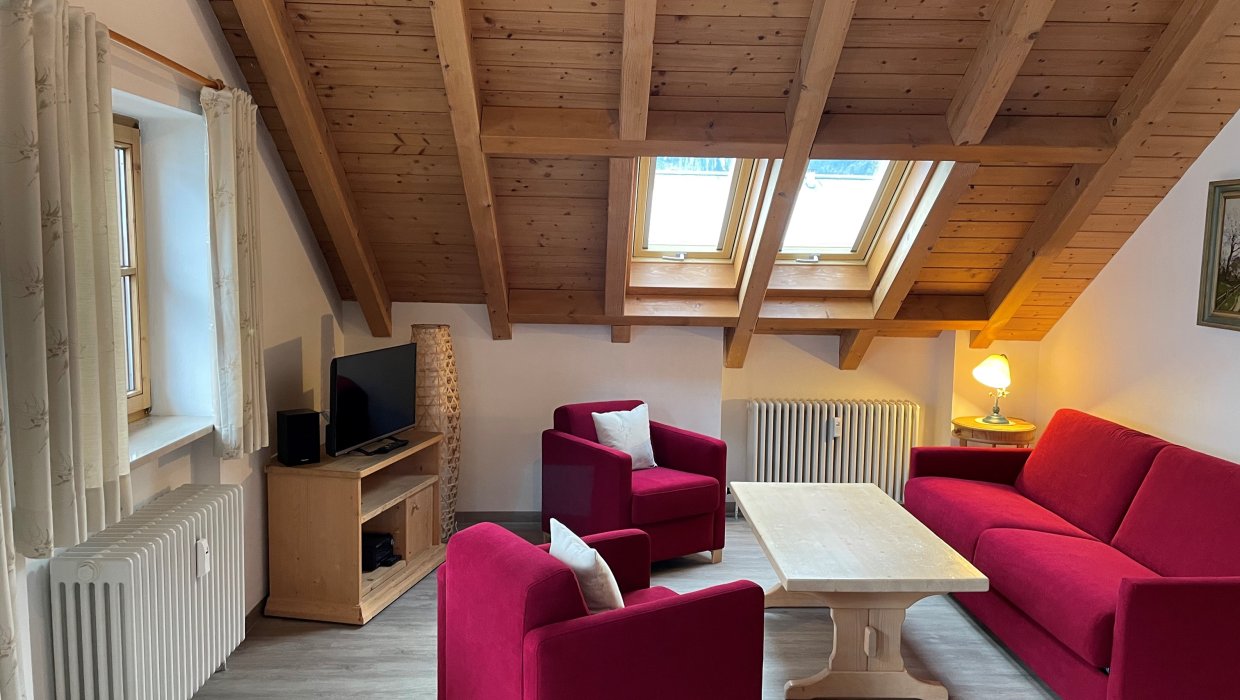 Die großzügige 2-Zimmer Ferienwohnung (56m²) bietet Platz für 2-4 Personen und ist im Allgäuer Stil eingerichtet. Sie verfügt über einen Wohn- & Schlafraum, Küche, Bad und Balkon.